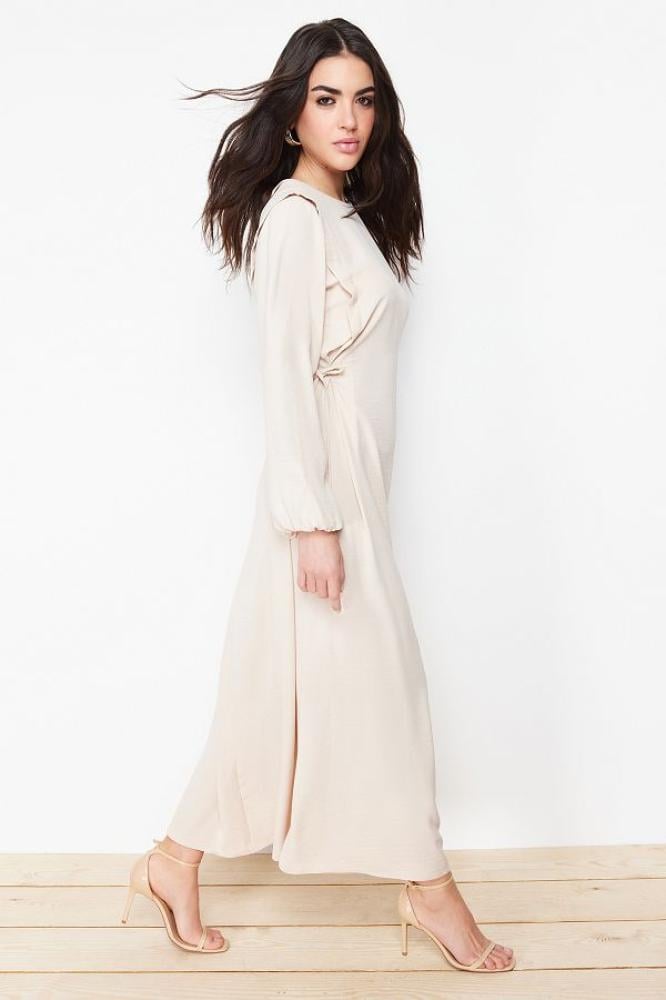 - الربطة من الجنب تضيف لمسة عصرية للفساتين